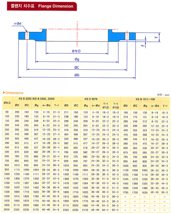 플랜지 치수표